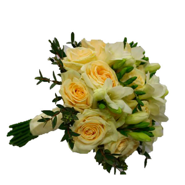 Букет из кремовых роз и фрезии