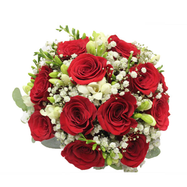 Букет из красных роз и фрезии